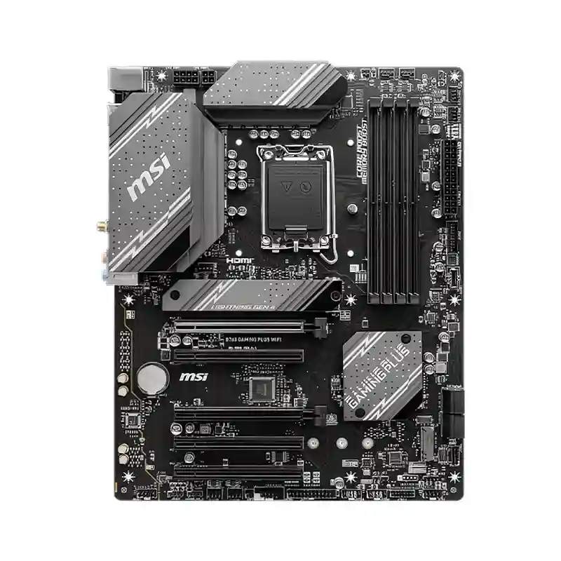 Modelo: B760 GAMINGPLUS WIFI | Marca: MSI | Chipset : Intel B760 | Socket : LGA 1700 | Procesadores compatibles : Intel Core de 14/13/12va generaci?n, Pentium Gold y Celeron | Tipo de memoria: DDR5 Admite hasta 6800(OC) MHz | Ranuras de mem.ram : x4 ranuras (Admite hasta 256 GB)